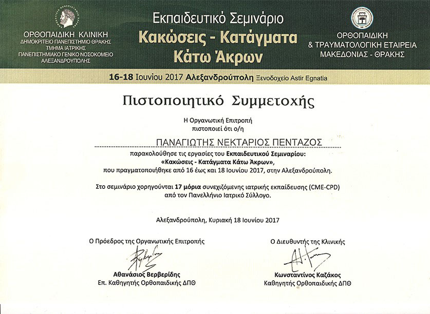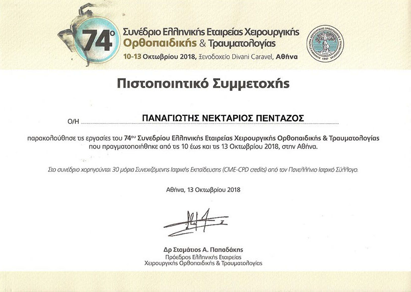 5) 73ο ΠΑΝΕΛΛΗΝΙΟ ΣΥΝΕΔΡΙΟ ΟΡΘΟΠΑΙΔΙΚΗΣ ΧΕΙΡΟΥΡΓΙΚΗΣ ΚΑΙ ΤΑΡΥΜΑΤΟΛΟΓΙΑΣ (2017)