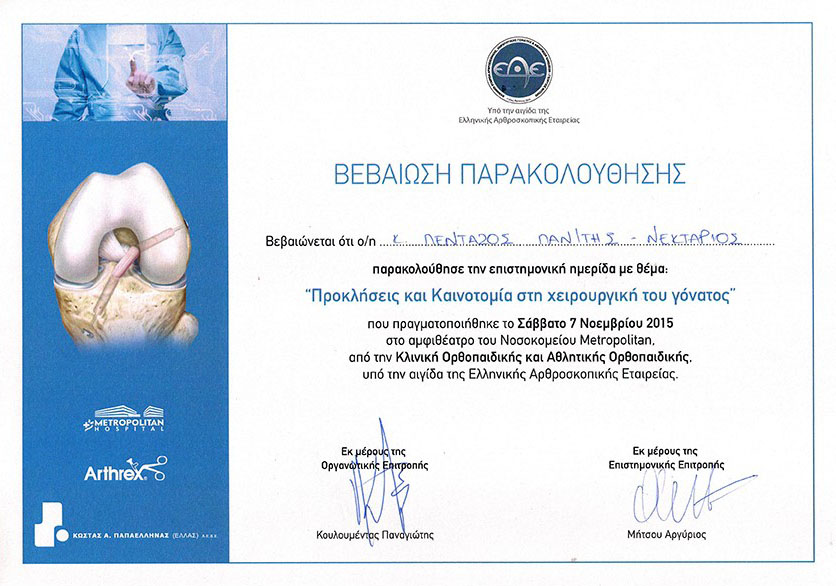 4) ΑΠΟ 12/12/2017 – 19/06/2018 ΑΣΚΗΘΗΚΑ ΣΤΟ Β’ ΟΡΘΟΠΑΙΔΙΚΟ ΤΜΗΜΑ ΤΟΥ ΓΕΝΙΚΟΥ ΝΟΣΟΚΟΜΕΙΟΥ ΠΑΙΔΩΝ ΑΘΗΝΩΝ «ΠΑΝ. & ΑΓΛ. ΚΥΡΙΑΚΟΥ» Τίτλος Ιατρικής Ειδικότητας Ορθοπαιδικής και Τραυματολογίας (Νοέμβριος 2018)